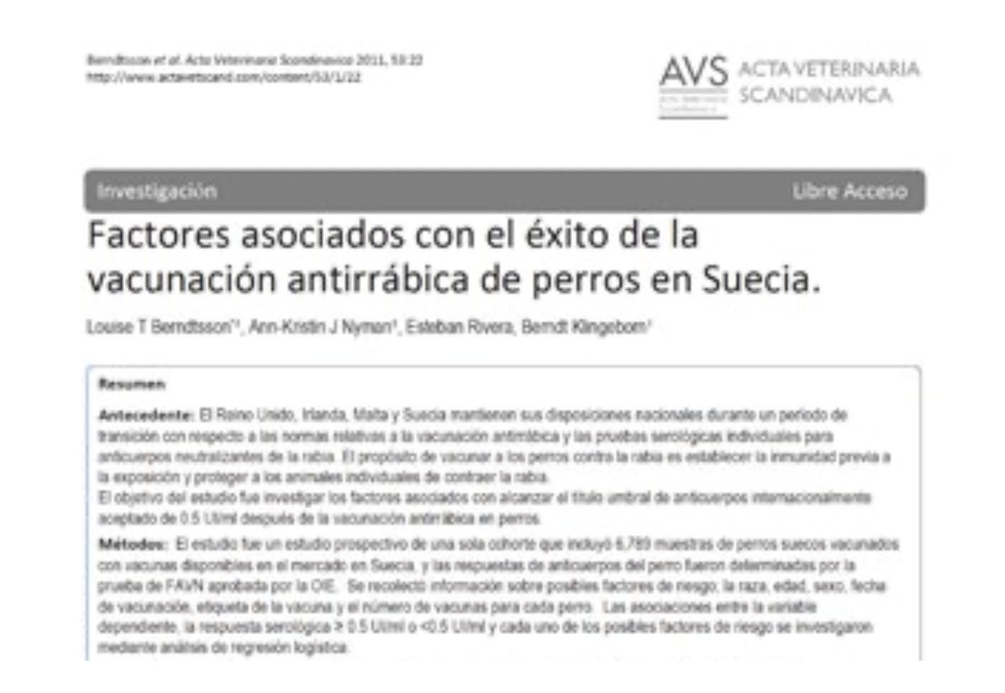 Factores asociados con el éxito de la vacunación antirrábica de perros en Suecia.