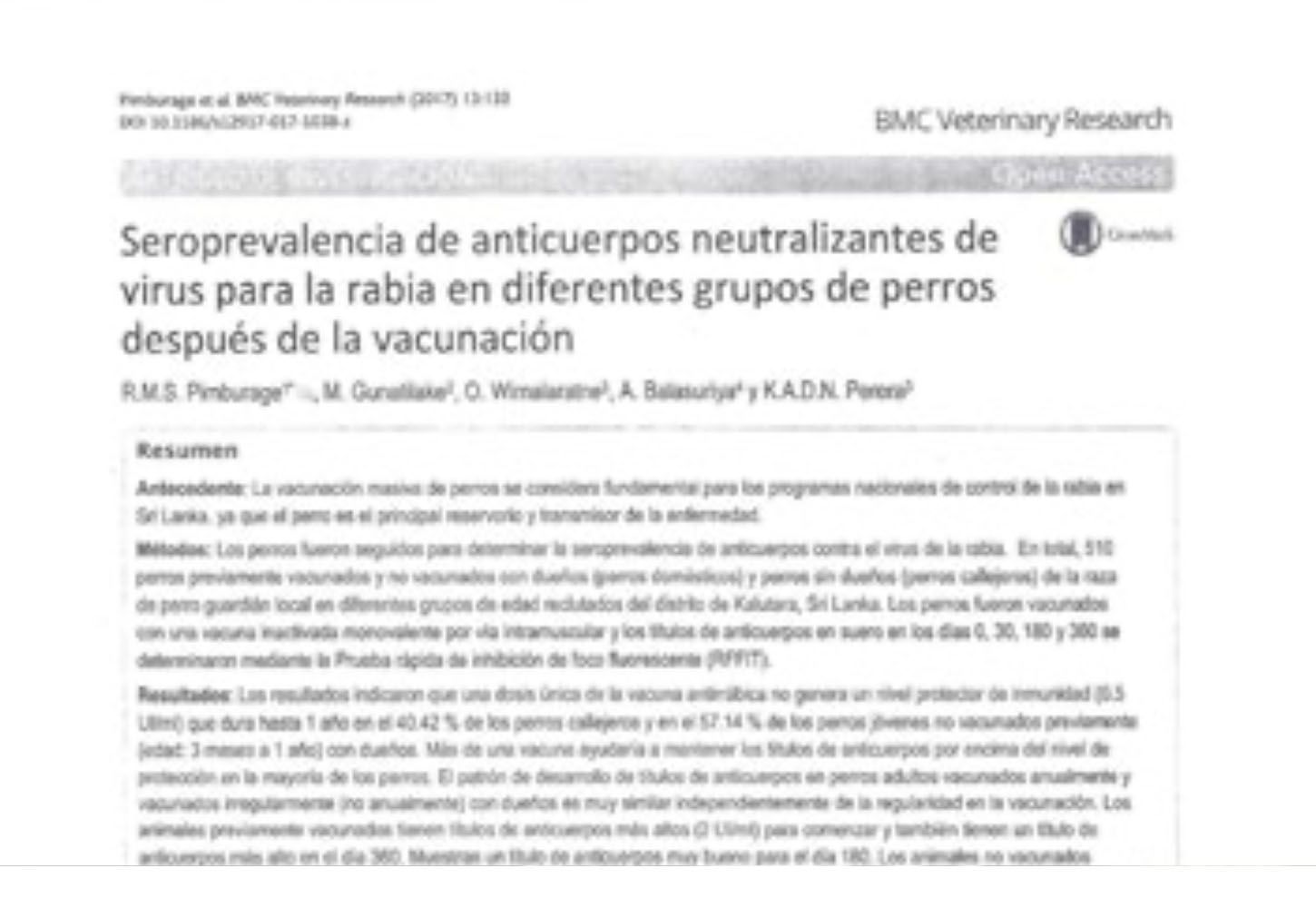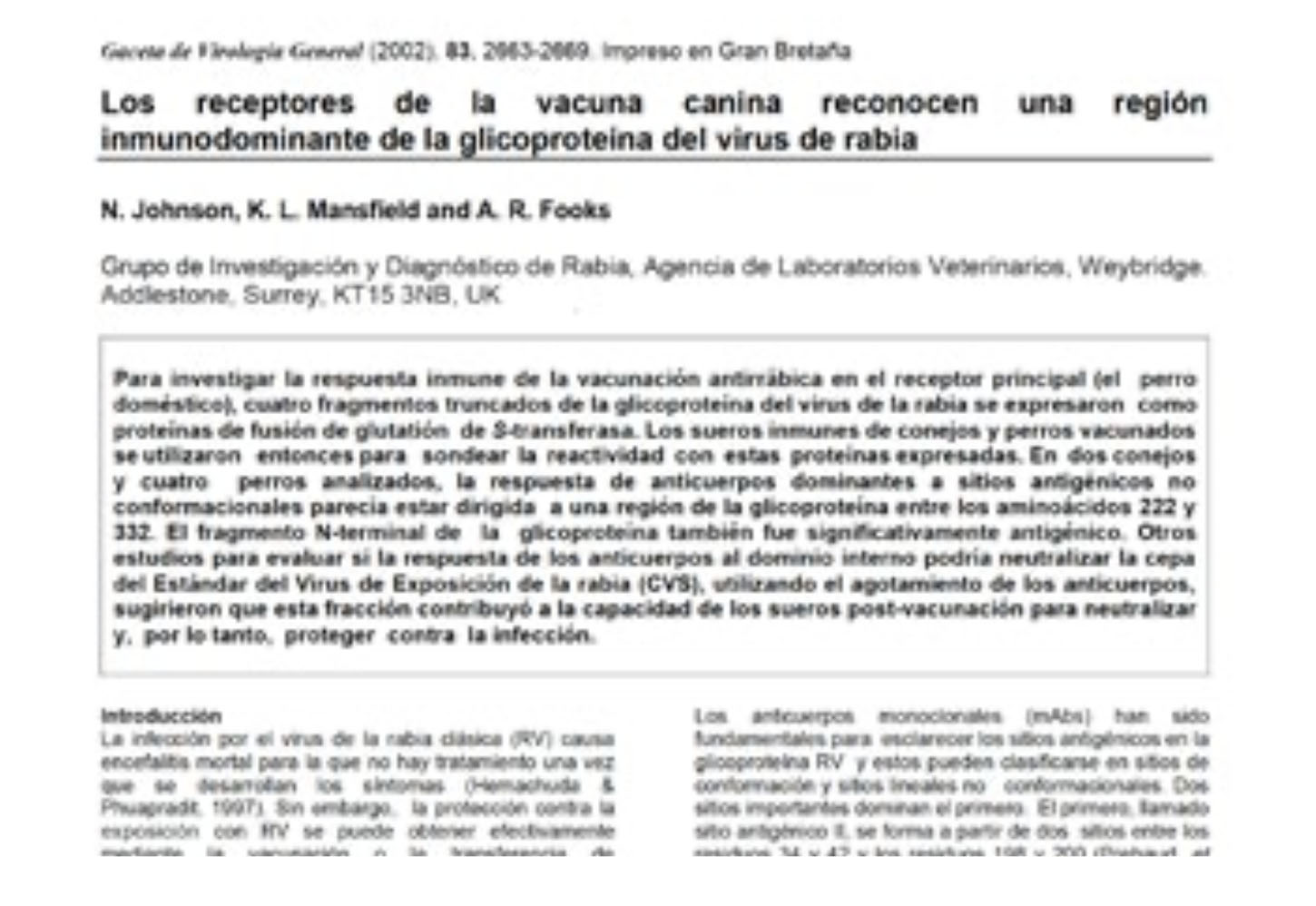 Los receptores de la vacuna canina reconocen una región inmunodominante de la glicoproteína del virus de la rabia.