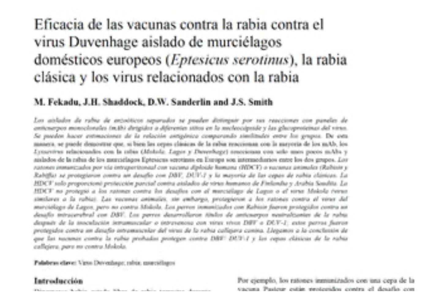 Eficacia de las vacunas contra la rabia contra el virus Duvenhage aislado de murciélagos domésticos europeos (Eptesicus serotinus), la rabia clásica y los virus relacionados con la rabia.