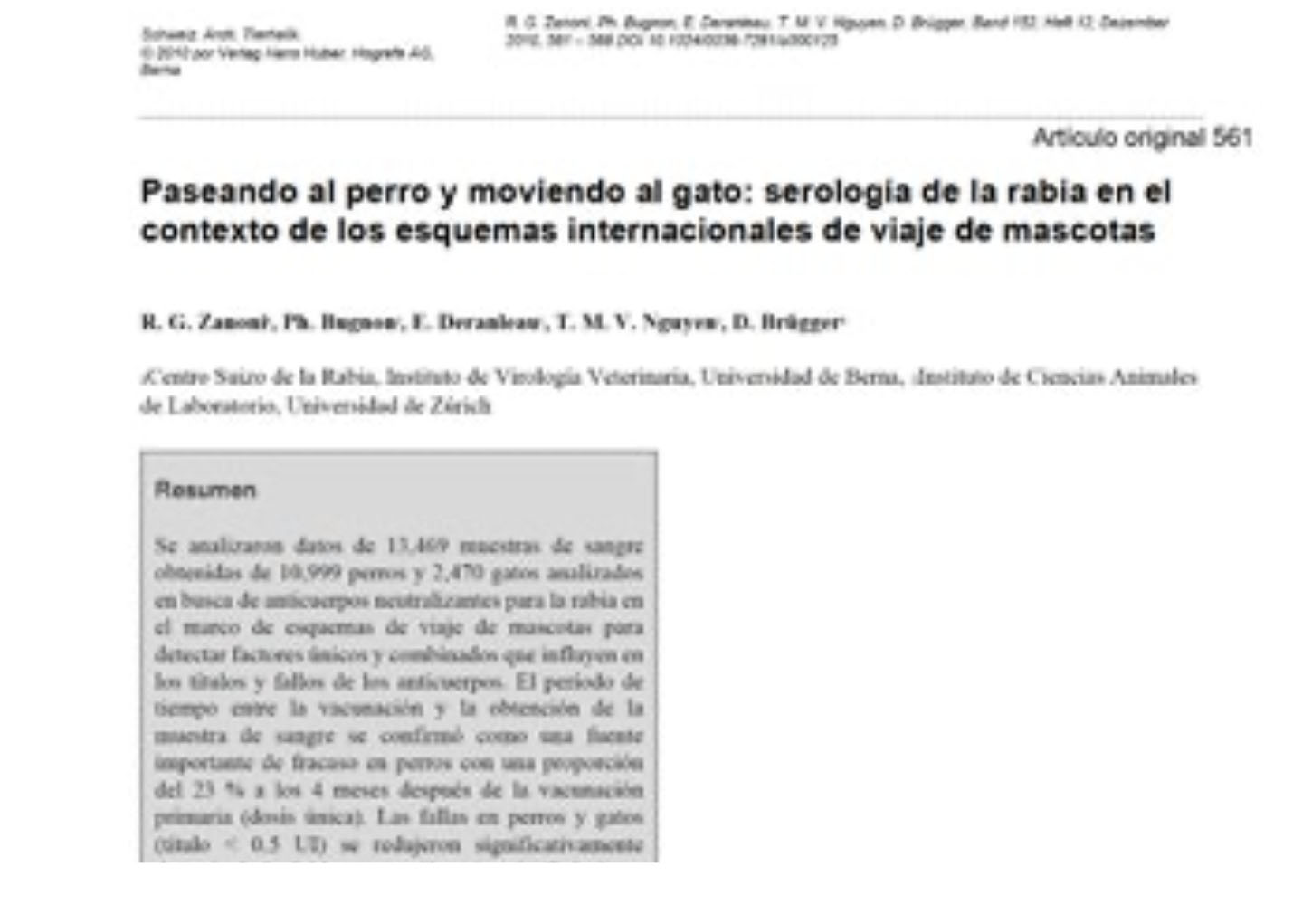 Paseando al perro y moviendo al gato: serología de la rabia en el contexto de los esquemas internacionales de viaje de mascotas.